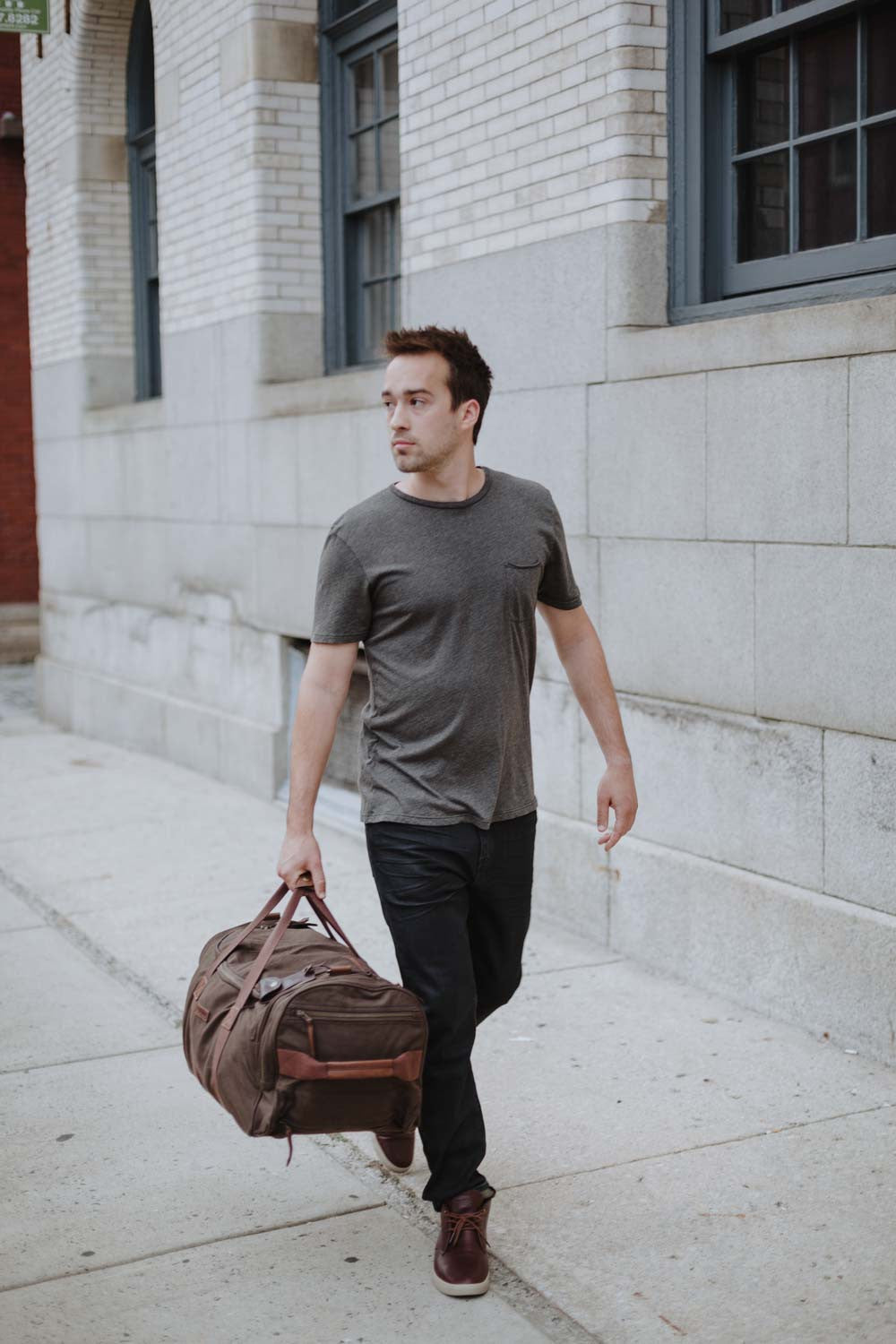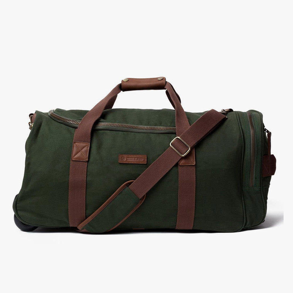 It's a duffle. It's a wheeling suitcase. It's both. This versatile, carryon-sized travel companion has a contrast leather trim and rugged brass hardware, a removable long strap and stash pockets on the inside and outside of the bag. When not wheeling it around, easily store the collapsible handle behind a hidden zipper pocket.
